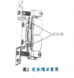 詢問操作人員,前一個患并進行的是臥位檢查,在給患者拍胸片.把機架拉到180cm位置時出現故障。關機重啟后故障依舊,考慮是由于機架接觸不良。移動機架,機架上下、左右、前后都能移動,但前后移動到胸片架處,聽見有電磁鐵吸合的聲音,OTS液晶顯示器接通點亮。將機架拉到180cm位置,拍片,機器正常工作。繼續進行患者檢查,但檢查幾例患存后故障再次出現。再次前后移動機架,有電磁鐵吸合聲音,但馬上又有斷開的聲音。因此懷疑是前后位鎖緊裝配(見圖1)出現故障。檢查鎖緊裝配,將鎖緊裝配的電源接頭拔下,OTS液晶顯示器接通點亮,機器可以正常工作,但機架前后位不能鎖定。進一步測量電源接頭處,24V電壓正常,確定是鎖緊裝配故障。鎖緊裝配由兩個圓柱型電磁鐵組成.輸入的電源分別輸入到兩個電磁鐵中,仔細檢查發現其中一個電磁鐵的定位銷(見圖2)缺失,并且輸入到這個電磁鐵的兩根電源線被電磁鐵帶到電磁鐵和固定板的間隙中,電源線的絕緣皮已經破裂。分析是電源線短接,導致24V短路。
